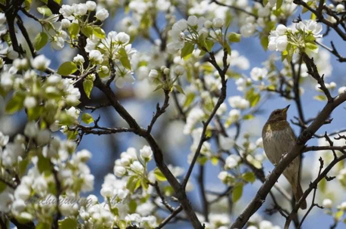桃樹(shù)、杏樹(shù)、梨樹(shù),你不讓我,我不讓你,都開(kāi)滿了花趕趟兒。紅的像火,粉的像霞,白的像雪?;ɡ飵е鹞秲海婚]了眼,樹(shù)上仿佛已經(jīng)滿是桃兒、杏兒、梨兒?;ㄏ鲁汕С砂俚拿鄯湮宋说佤[著,大小的蝴蝶飛來(lái)飛去。野花遍地是:雜樣兒,有名字的,沒(méi)名字的,散在草叢里,像眼睛,像星星,還眨呀眨的。