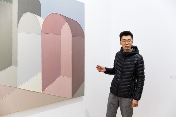 藝術(shù)家趙新宇,1989年出生于內(nèi)蒙古,2012年畢業(yè)于四川美術(shù)學(xué)院油畫系。趙新宇最早的創(chuàng)作,即為人所知的“車廂”系列,涉及了一種日常經(jīng)驗(yàn),后續(xù)階段的作品以情緒性和敘事性為底色,而使得整個(gè)畫面頗具戲劇色彩。在新作當(dāng)中,這一痕跡的延伸則是趙新宇似乎試圖通過對(duì)畫面結(jié)構(gòu)的編排,對(duì)比之前的作品,依舊是在構(gòu)景,但卻在逐漸在取締物的現(xiàn)實(shí)性因素。新作當(dāng)中技法的轉(zhuǎn)變,厚涂式的平推僅保留了一部分,新作當(dāng)中的轉(zhuǎn)向在某種程度上僅僅構(gòu)成了對(duì)于厚涂畫法的一個(gè)對(duì)立面發(fā)生,像是一次新的開場(chǎng),畫面本體基本問題再次噴涌而來,在這一情形下,趙新宇通過對(duì)于框架結(jié)構(gòu)式描繪的轉(zhuǎn)向,試圖引向一種對(duì)于畫面心理的感知。