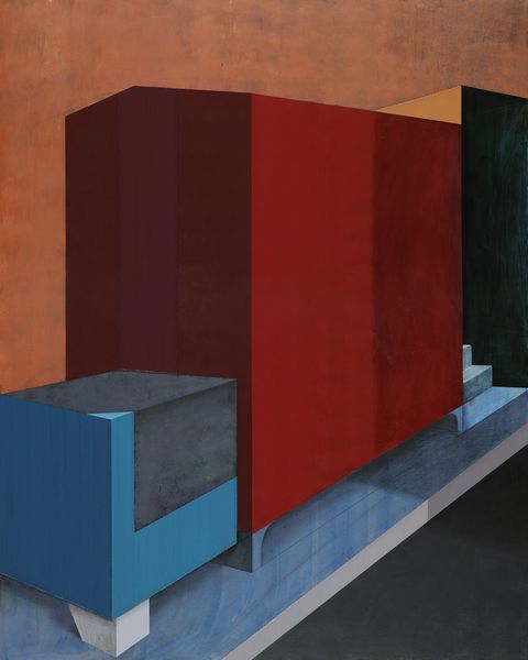 趙新宇從以往的作品中提取出了作品畫面的三個(gè)基本空間模型,“凹”“凸”“平”,并且在此次個(gè)展作品當(dāng)中非常刻意的以豎構(gòu)圖來強(qiáng)化這一理式概念,甚至試圖探究以往作品如果以一種“剩余”的狀態(tài)呈現(xiàn),意義生成的核心會(huì)發(fā)生怎樣的轉(zhuǎn)變。《室外#1垂直,傾斜》右下角垃圾箱輪子的處理,是以暗色塊暗示了原物的形態(tài),并沒有再做深入的刻畫,而實(shí)際上這一形態(tài)往往是作品底層的保留;《室外#3》右上部,你可以說是割破了的畫面,或者是基于無意識(shí)的,總之對(duì)于結(jié)構(gòu)穩(wěn)定的畫面而言,像極了一次意外的產(chǎn)物。在某種意義上它超越了象征界,也即超越了經(jīng)驗(yàn)所能夠涵蓋的內(nèi)容。但是新作當(dāng)中似乎更有新的趨向,比如《室外#3》和《室外#4》兩件作品,一件觸及畫面的變形,另一件暖色調(diào)的嘗試則引發(fā)了某種藉里科式的憂郁,或許這是匱乏和剩余的并發(fā)癥,某種飄散的內(nèi)容甚至帶給人一種訴諸作品本身相反的感受。