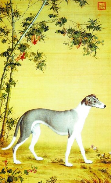 自宋代始花鳥畫獲得空前發(fā)展,皇家畫院極盛,追求精工寫實,動物畫這時得以獨立出來,單獨的犬畫開始出現(xiàn),現(xiàn)藏于北京故宮的宋李迪《獵犬圖》即是一幅不可多得的作品。他畫的《獵犬圖》造型比例精確,明暗層次清晰,立體感極強,犬的神態(tài)與動態(tài)尤其傳神,將獵犬盯視前方漫步而行的感覺刻畫得入木三分,堪稱形神俱佳之作。可以看出畫家不僅具有高超的繪畫表現(xiàn)技巧,對狗的生活習性也有很深的了解,該作品體現(xiàn)了宋代畫家的非凡寫實功力與水平。“南宋四家”之一的劉松年曾畫過一幅風俗畫《補納圖》,畫中一老僧正在專注穿針引線補綴,床榻前一小狗席地而臥,似仰頭目視主人,小狗的刻畫堪稱神來之筆,寥寥幾筆勾勒,狗便活脫而出。
