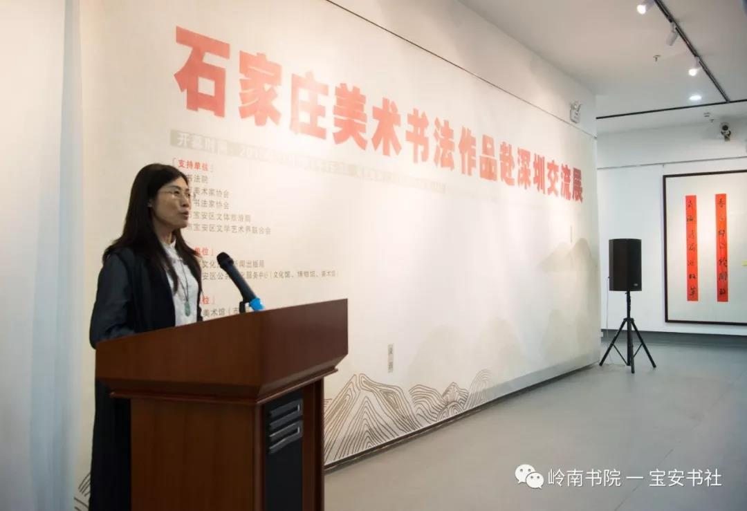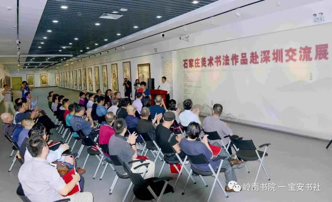 2018年11月8日下午15:00,由石家莊市文化廣電新聞出版局、深圳市寶安區(qū)公共文化服務(wù)中心(文化館、博物館、美術(shù)館)主辦,石家莊市美術(shù)館(市畫院)、嶺南書院、深圳寶安書法藝術(shù)研究社承辦,深圳市寶安區(qū)圖書館、寶安區(qū)美協(xié)、寶安區(qū)書協(xié)協(xié)辦并得到深圳市書法家協(xié)會、美術(shù)家協(xié)會、寶安區(qū)文體旅游局、寶安區(qū)文聯(lián)的大力支的 “ 石家莊美術(shù)書法作品赴深圳交流展 ” 在深圳市寶安區(qū)圖書館負一樓展廳隆重開幕——