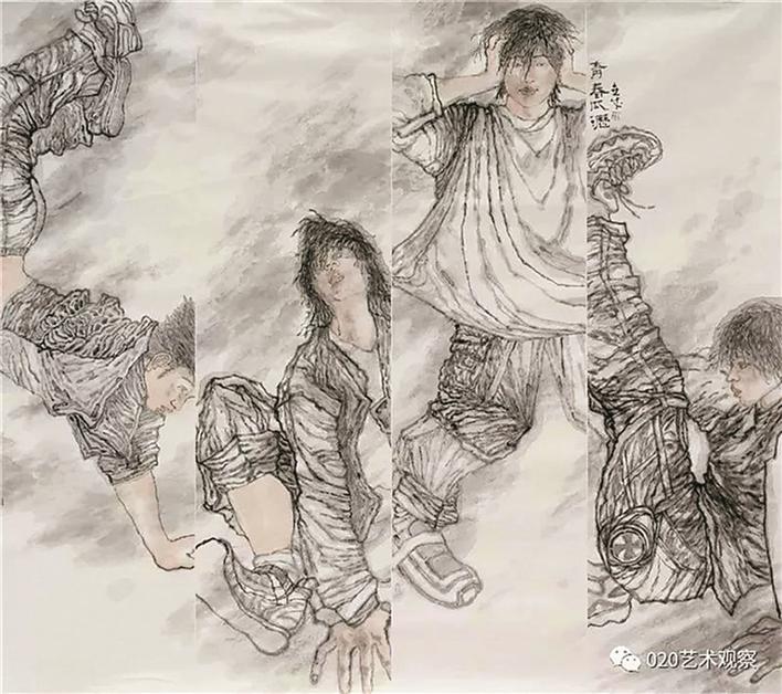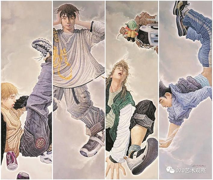 據(jù)悉,原作正是深圳市福田區(qū)美術(shù)家協(xié)會主席張闖《2004—街舞》布面油彩,有所不同的是涉嫌抄襲的作品是國畫。從細節(jié)對比上看,作品相似度極高。此外,涉嫌抄襲的作品的方向與張闖的原作相反。有人猜測,涉嫌抄襲的作者是將張闖《2004—街舞》通過電腦制作反轉(zhuǎn)過來,或者是投影后制作完成作品的。