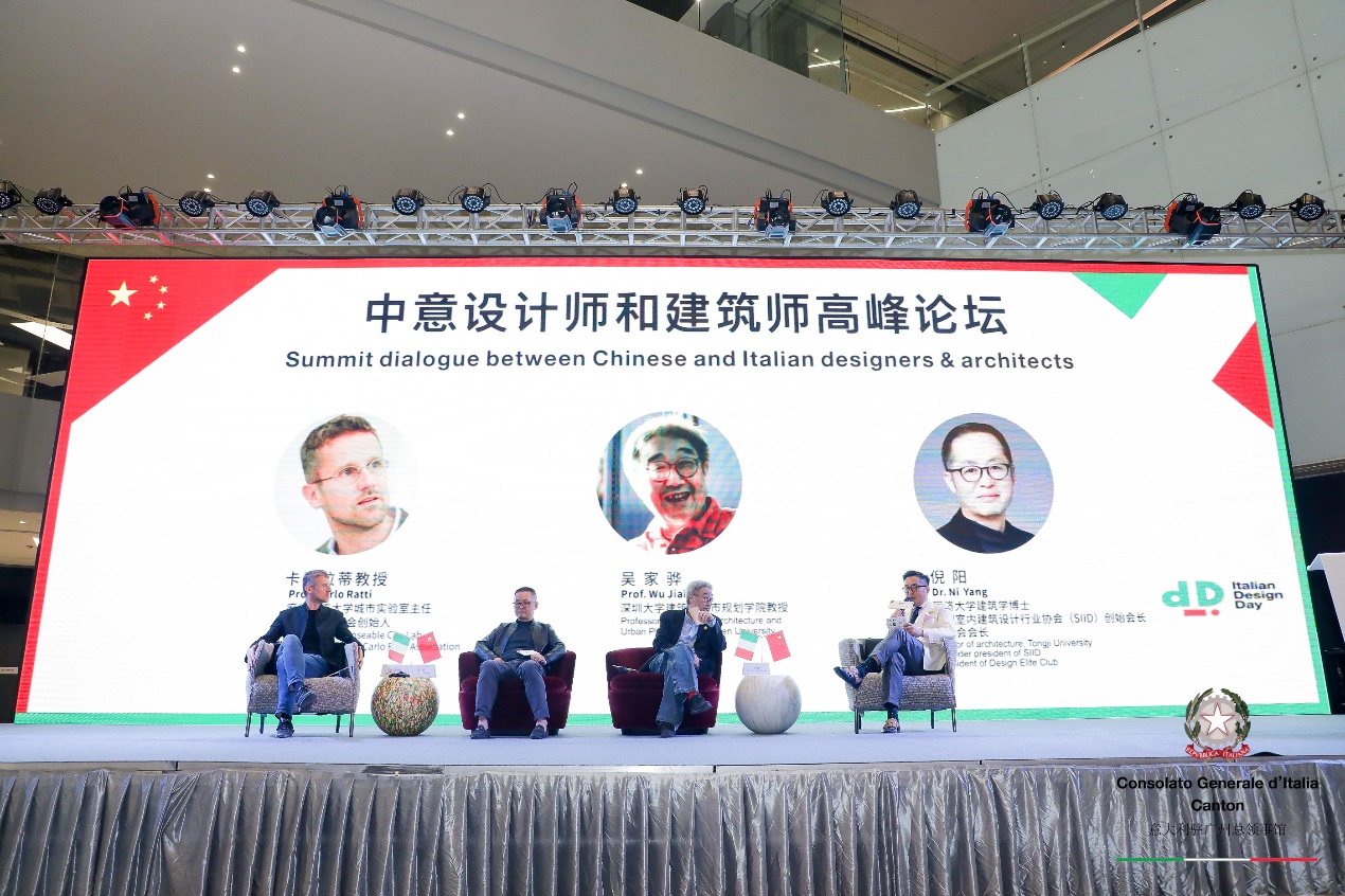 活動(dòng)還邀請(qǐng)到深圳大學(xué)建筑與城市規(guī)劃學(xué)院教授吳家驊、深圳室內(nèi)建筑設(shè)計(jì)行業(yè)協(xié)會(huì)(SIID)會(huì)長(zhǎng)倪陽博士與Carlo Ratti (卡洛·拉蒂)教授進(jìn)行論壇對(duì)話。吳家驊教授從中國(guó)人的基礎(chǔ)思維,民族性上看待城市未來這一概念。他認(rèn)為人口、土地、資本綜合實(shí)力是決定未來城市的核心。同時(shí)他希望,在未來,中意兩國(guó)能夠在城市設(shè)計(jì)上有更加深入的合作,達(dá)到“東學(xué)西建”的影響力,把中國(guó)設(shè)計(jì)師的創(chuàng)造性激發(fā)出來。倪陽博士則表示,科技對(duì)于城市未來的影響力是極大的。大數(shù)據(jù)的發(fā)展,已經(jīng)能夠做到對(duì)未來城市的預(yù)測(cè),而設(shè)計(jì)這樣人文類的工具,與科技的結(jié)合,為未來城市帶來的前景是可觀的。