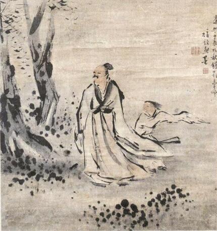 指畫以筆畫作為基礎(chǔ),先要將筆畫學(xué)好以后,才能進(jìn)一步學(xué)畫指頭畫。高其佩早年打下了以筆作畫的基礎(chǔ),觸類旁通,發(fā)展到專門以指作畫,得心應(yīng)手揮灑自如,創(chuàng)作指畫均信手一揮而就,有“頃刻數(shù)十幅”之說,留下的題畫詩(shī)屏、詩(shī)軸、斗方、詩(shī)卷等書法墨跡不多,指畫作品卻為數(shù)眾多,被多家博物館收藏。如收藏于武漢博物館的高其佩指畫作品《人物指畫圖》軸,為高其佩指畫代表作之一。此畫線條生動(dòng)流暢,布局空靈合理,設(shè)色淡雅清麗。人物形態(tài)逼真,面部用尖指甲細(xì)勾,簡(jiǎn)練傳神,衣紋指頭指甲并用,頓挫自如。畫面上,秋風(fēng)颯爽,落葉繽紛,一老一少逆風(fēng)而行走在路上,小童有不勝風(fēng)力、趔趄前行之感。只見衣帶飄拂,發(fā)絲飛揚(yáng),天色暗淡,樹木隨風(fēng)搖曳,運(yùn)筆轉(zhuǎn)折頓挫間自然無痕,一幅秋風(fēng)掃落葉的情景躍然紙上。