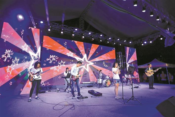 ?深圳高校學(xué)子帶來(lái)樂(lè)隊(duì)演唱。