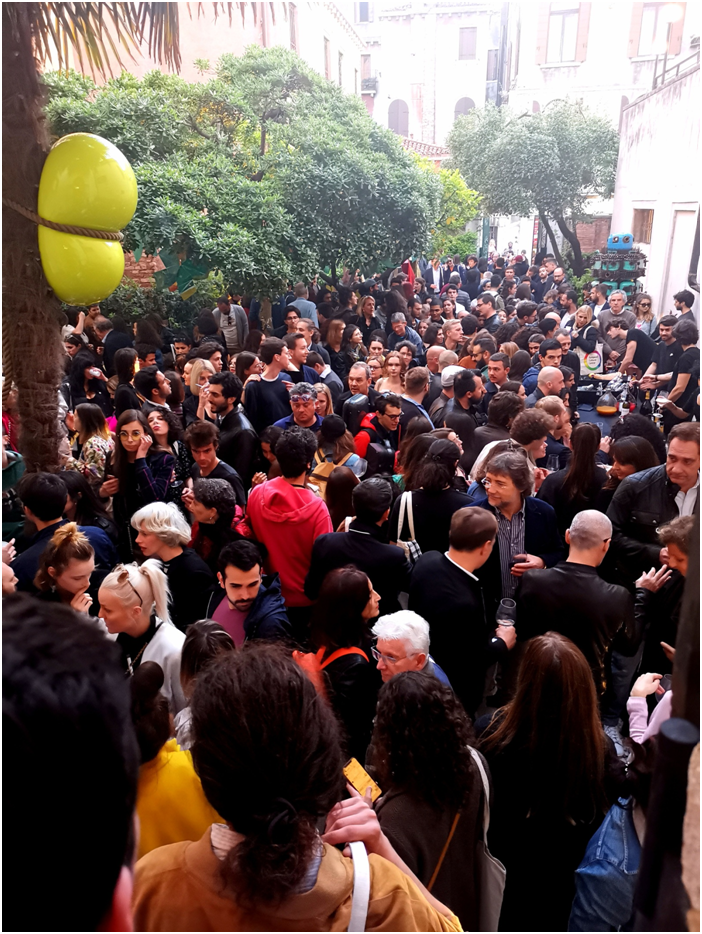 本屆威尼斯藝術雙年展覽藝術總監(jiān)為拉夫?魯戈夫(Ralph Rugoff),展覽名為“愿你生活在有趣的時代"(May You Live in Interesting Times)。全球藝術事務基金會,是荷蘭非營利組織,負責歐洲文化中心(European Cultural Centre)在莫拉宮和本博宮等五個主要展館主辦的大型國際展,邀請了世界各地優(yōu)秀藝術家參展,展覽現(xiàn)場人山人海,人流量大大超過以往,參觀者大多是來自世界各地藝術家與藝術愛好者、藏家、畫廊、策展人、及藝術機構等。