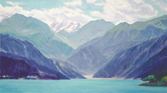 唐寅近幾年的創(chuàng)作成果頗豐,從“致境”“光景常新”“春暖花開”“映天印象”“心源化境”和“真際”“臨水”“萬物有靈”“四季和風”等展覽的舉辦和作品創(chuàng)作可以看出,他的油畫風景畫在具有自然真實屬性的同時,突破對景寫生的西畫藩籬,更多的是針對自然的有意識剪裁,呈現(xiàn)了中國式的取景造境和意象精神。