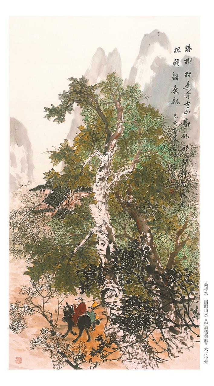 高坤水國(guó)畫山水《把酒話桑麻》