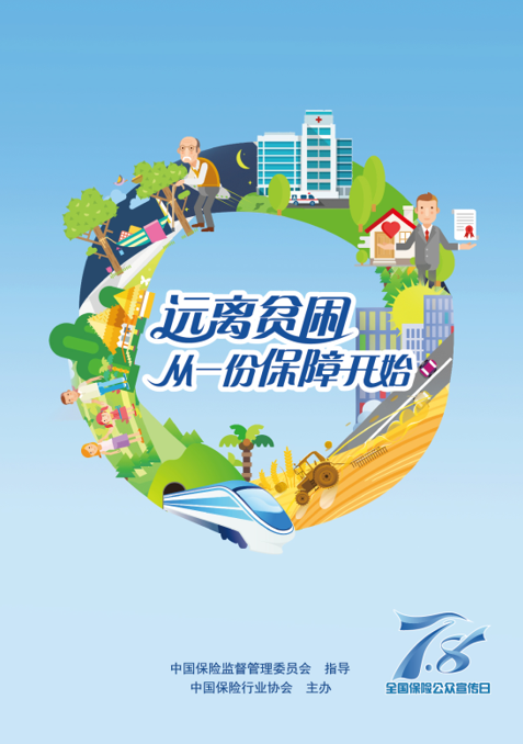 以7·8Logo為中心的光圈,周邊是日常生活的剪影,寓意著保險(xiǎn)似陽(yáng)光雨露,惠及人民群眾生產(chǎn)、生活的方方面面,反映了保險(xiǎn)扶貧精準(zhǔn)服務(wù)、缺口補(bǔ)位的功能。