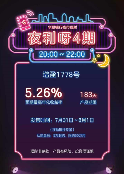盛夏一到,夜市開始紅火,銀行也來(lái)湊熱鬧。華夏銀行推出預(yù)期年化收益率5.26%的“夜市”理財(cái)產(chǎn)品。
