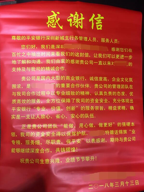 深圳新聞網(wǎng)訊 日前,平安銀行深圳分行分支行聯(lián)動(dòng)想方設(shè)法勸阻客戶,成功堵截了一起詐騙,幫助客戶避免了500多萬(wàn)元的資金損失,并協(xié)助警方抓獲了詐騙犯罪嫌疑人。此次成功堵截詐騙,得到了客戶和家屬的高度贊揚(yáng),專程送來(lái)了錦旗和感謝信,稱贊平安銀行“業(yè)專精、服務(wù)細(xì)、 盡職責(zé)、保平安”。