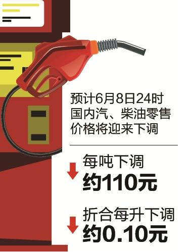 國際油價5月一度攀升至3年多來的階段高位,此后受歐佩克等產(chǎn)油國有意增產(chǎn)及美國原油產(chǎn)量頻創(chuàng)紀(jì)錄高位的影響,國際油價震蕩下行。根據(jù)目前一攬子原油價格變化率水平測算,預(yù)計6月8日24時國內(nèi)汽、柴油零售價格將迎來下調(diào),每噸下調(diào)約110元,折合每升下調(diào)約0.10元。