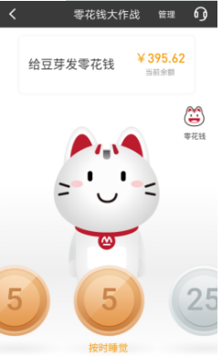 作為存錢罐,“小招喵”萌萌的外形招人喜歡,而當把智能小屏幕放入表帶,它又變身真正的兒童手表時刻陪伴孩子。家長登錄招商銀行APP“零花錢大作戰(zhàn)”功能,綁定小孩的銀行卡和儲蓄罐后,動動手指就能給孩子“發(fā)送”零花錢,與孩子實時互動,整個零花錢發(fā)送體驗非常有趣。家長還可以和孩子做“約定”,當孩子完成某項約定任務,進行轉賬。而小朋友可以在自己的“小招喵”存錢罐上,可以看到零花錢金幣落下過程,還可以通過存錢罐去查詢零花錢余額。