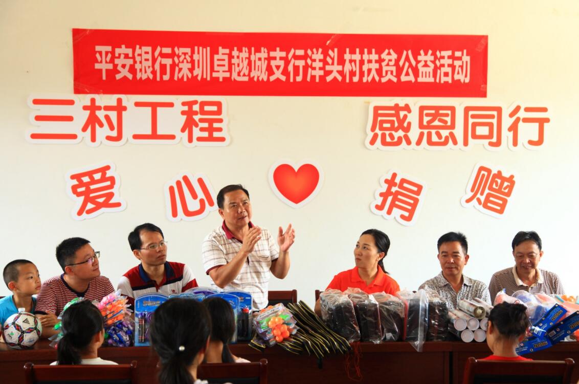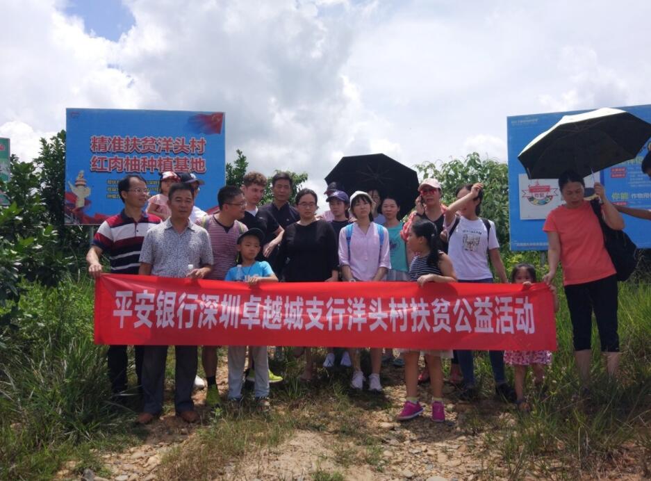 深圳新聞網(wǎng)訊 8月19日上午,為響應(yīng)平安集團“三村工程”建設(shè)和平安銀行總、分行黨委關(guān)于扶貧工作的號召,踐行社會責任,平安銀行深圳卓越城支行客戶、員工一行25人前往該行對口扶貧村紫金縣龍窩鎮(zhèn)洋頭村開展了扶貧公益活動。