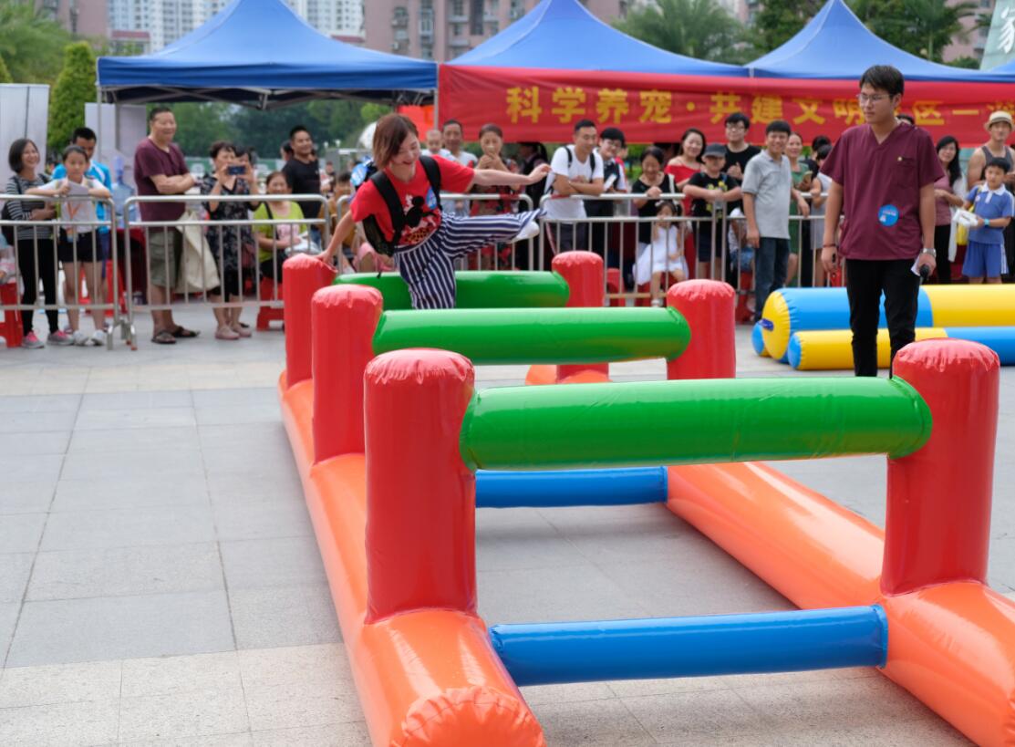 記者在現(xiàn)場(chǎng)看到,運(yùn)動(dòng)會(huì)由汪星人“翻山越嶺”障礙物通關(guān)和喵星人“萌主起駕”鏟屎官闖關(guān)兩個(gè)項(xiàng)目組成,比賽競(jìng)爭(zhēng)激烈趣味無窮,吸引了社區(qū)鄰里參與互動(dòng),活動(dòng)氣氛歡樂無邊。此次活動(dòng)既為社區(qū)帶來一場(chǎng)別開生面的趣味活動(dòng),又為社區(qū)居民宣傳了科學(xué)養(yǎng)寵的相關(guān)知識(shí),倡導(dǎo)文明養(yǎng)寵和諧社區(qū)的正能量?;顒?dòng)現(xiàn)場(chǎng)處處歡聲笑語,社區(qū)居民與小寵物們共享歡樂。