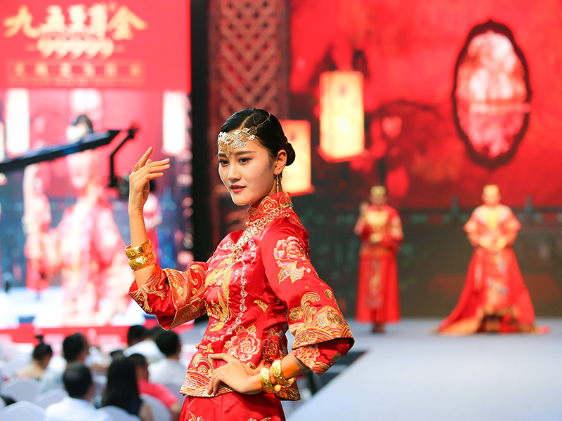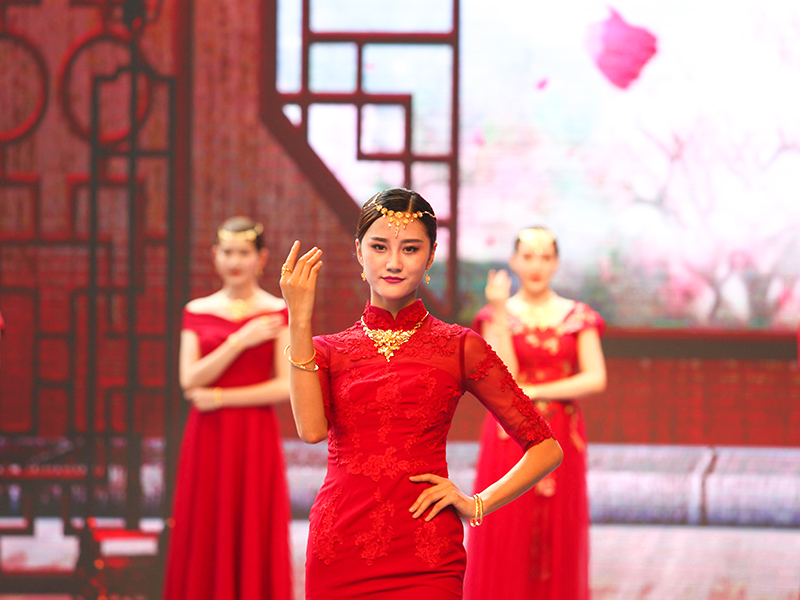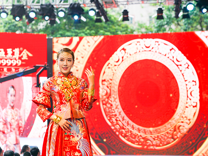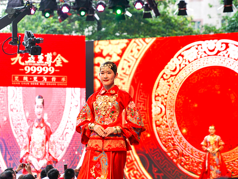 黃金文化與中國傳統(tǒng)婚慶文化淵源久遠(yuǎn),從古自今,黃金有情比金堅之意,有滿滿的喜慶之感,在嫁娶之時通常作為聘禮中的重頭戲。結(jié)婚三金通常指的是項鏈、手鐲、戒指,寓意夫妻情比金堅,一生一世永相隨之意,因此這美好的寄愿習(xí)俗一直被傳承至今。黃金又是財富、身份的象征,結(jié)婚佩戴黃金首飾,彰顯家族的財富、地位與榮譽(yù),飽含家族人濃郁的情感與欣喜,可代代傳承!九五至尊金至囍新娘演繹的中華黃金婚慶文化,唯美唯俏,牽動著每個人的心,掀起了中華黃金婚慶文化的熱潮。