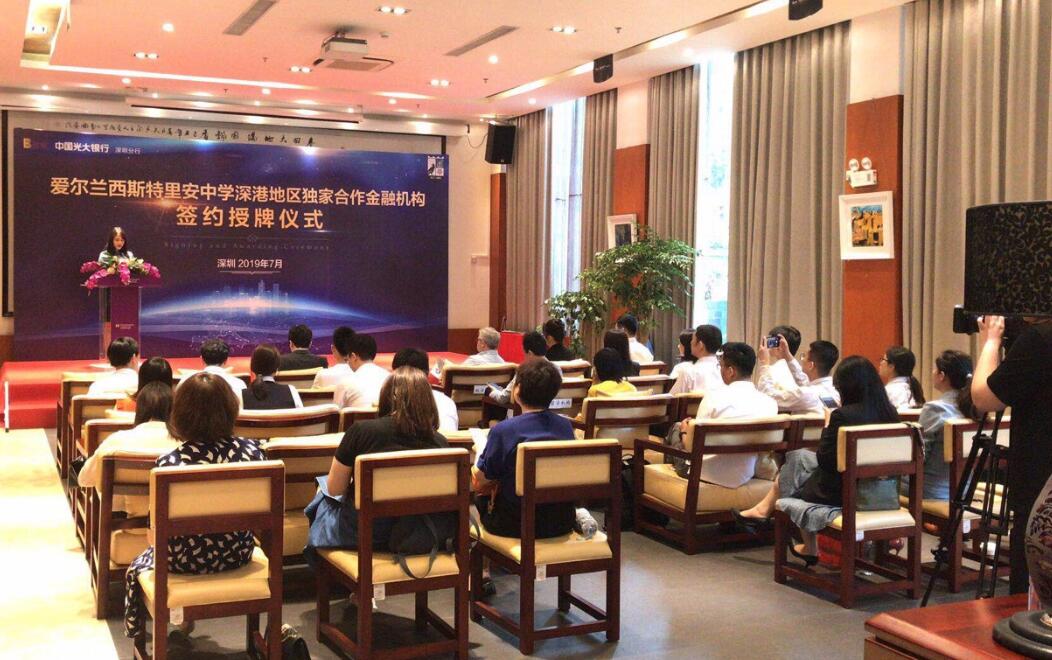 中國(guó)光大銀行深圳分行與愛(ài)爾蘭頂級(jí)私立男校簽署獨(dú)家合作授牌儀式現(xiàn)場(chǎng)