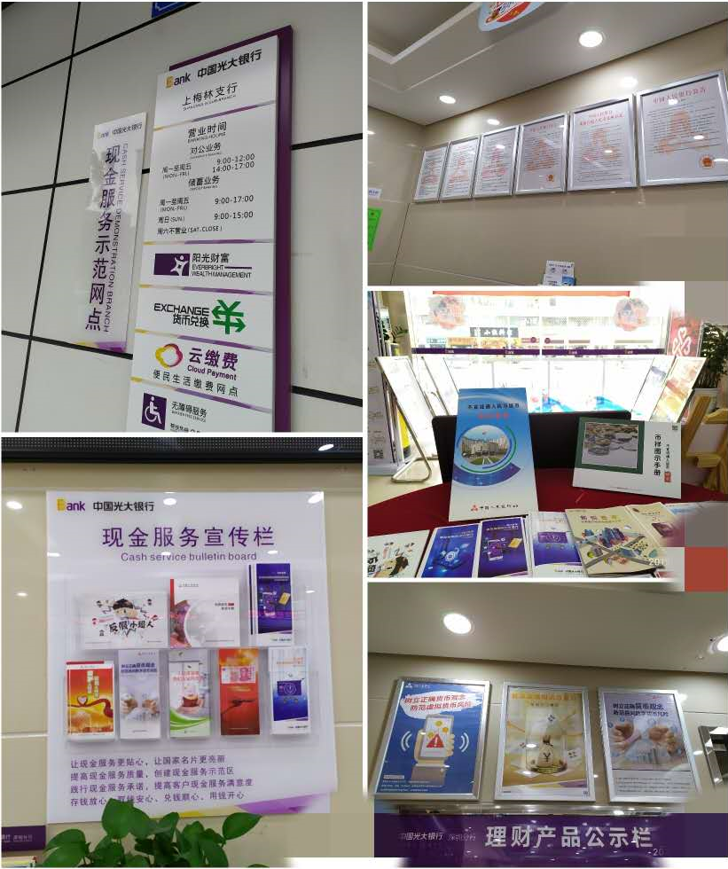 光大銀行上梅林支行正在積極構(gòu)建一個(gè)以中國人民銀行深圳中心支行為主導(dǎo),銀行業(yè)各金融機(jī)構(gòu)為主力,人民群眾為主體的現(xiàn)金服務(wù)示范區(qū),打造存取便捷、兌換便利、收支順暢、服務(wù)優(yōu)質(zhì)的現(xiàn)金流通環(huán)境,實(shí)現(xiàn)安全、高效、和諧的現(xiàn)金流通目標(biāo)。