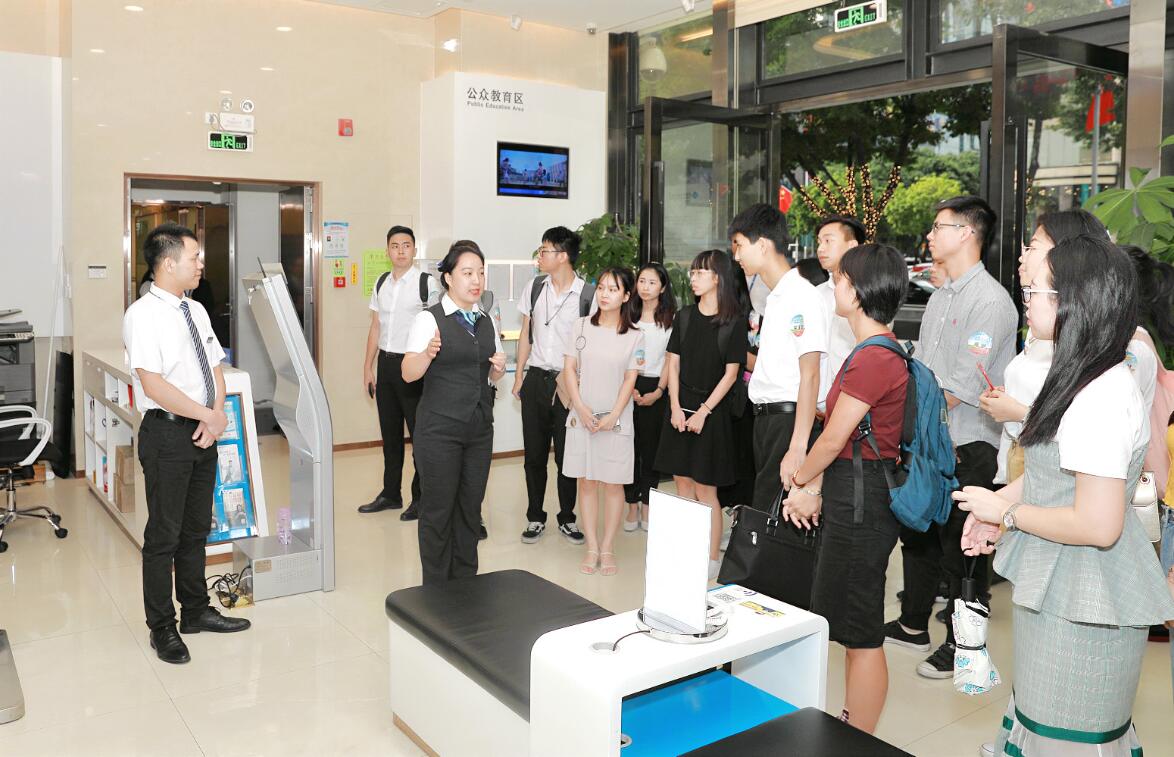開(kāi)放日活動(dòng)的第二站,同學(xué)們來(lái)到沙井支行營(yíng)業(yè)部、沙井坣崗支行和福田支行營(yíng)業(yè)部學(xué)習(xí)了銀行營(yíng)業(yè)網(wǎng)點(diǎn)功能區(qū)布局、窗口設(shè)置、營(yíng)業(yè)場(chǎng)所裝飾、智能設(shè)備配置及人員安排等情況,對(duì)銀行營(yíng)業(yè)網(wǎng)點(diǎn)的工作環(huán)境有了更直觀的感受和體驗(yàn)。特別是在參觀沙井東塘支行的員工宿舍“職工之家”時(shí),同學(xué)們對(duì)這個(gè)占地1500平米、總建筑面積3200平米的獨(dú)立大院由衷贊嘆,向往不已。