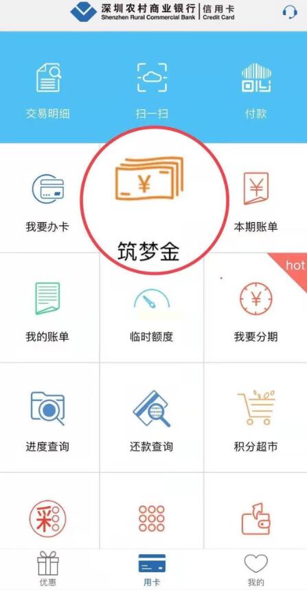 7、溫馨提示:如深圳農(nóng)商行信用卡APP首頁沒有“筑夢金”模塊,請至應用市場搜索“深圳農(nóng)村商業(yè)銀行信用卡”,下載最新版本APP。