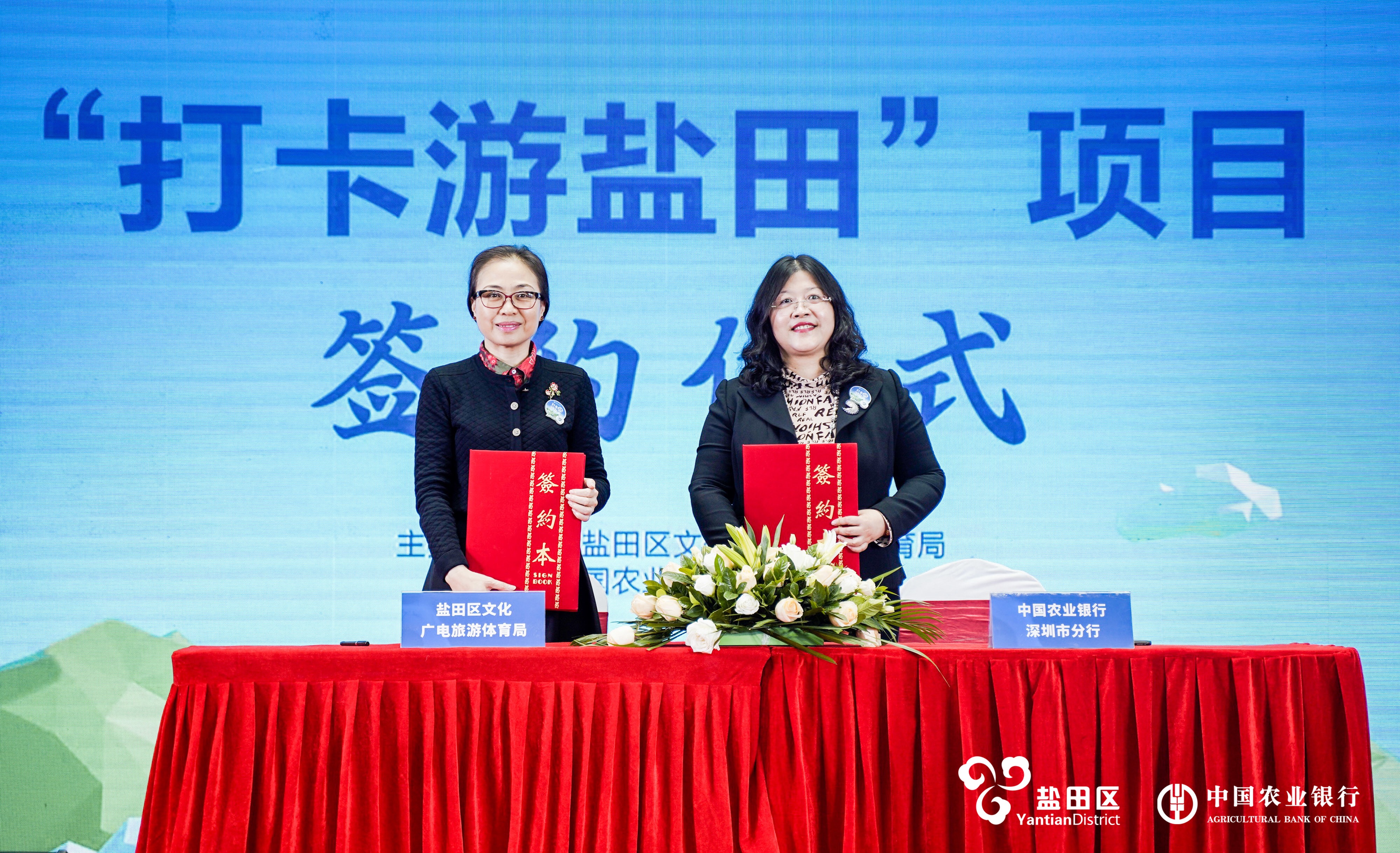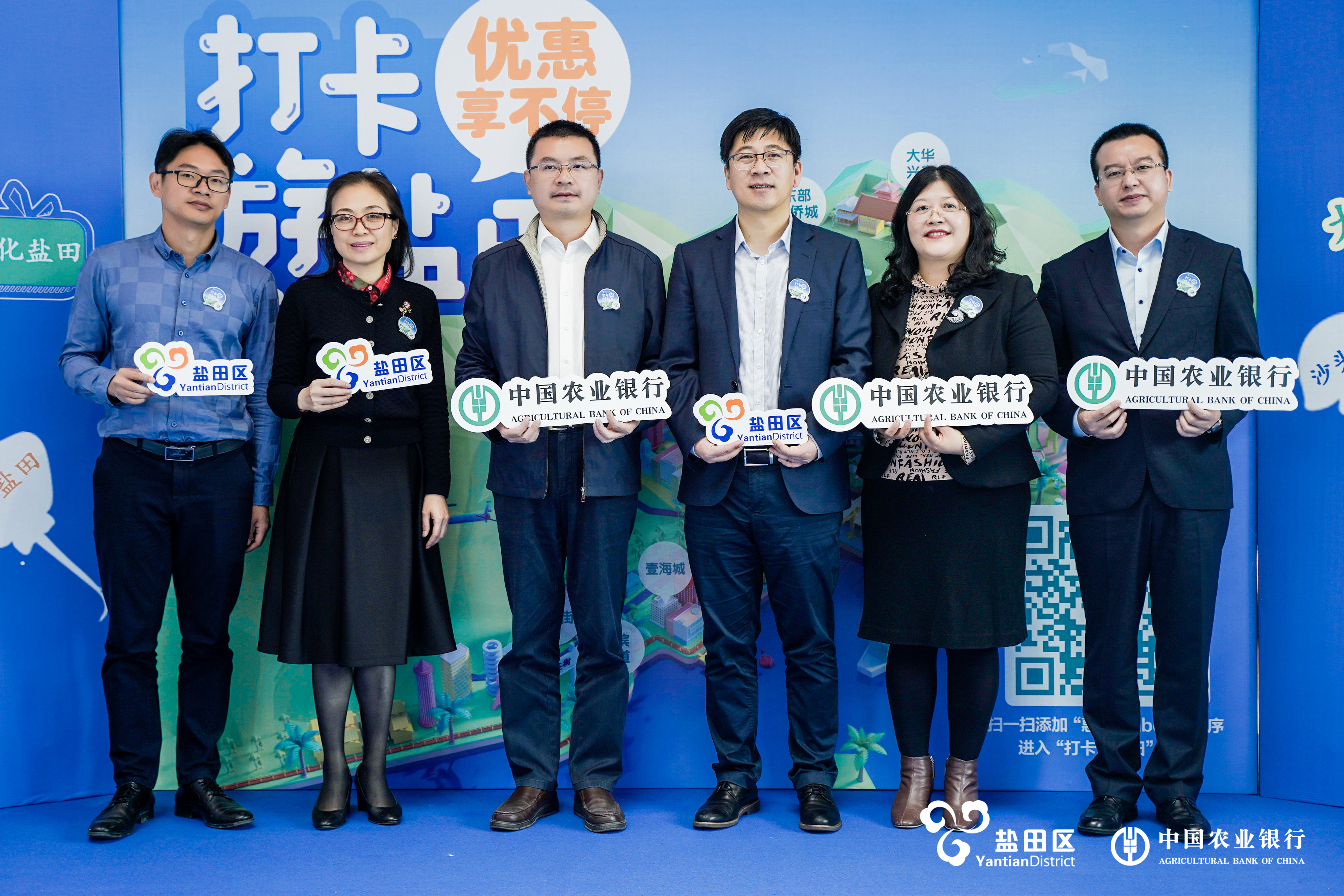 2019年12月17日上午,由深圳市鹽田區(qū)文化廣電旅游體育局主辦,農(nóng)行深圳分行承辦的鹽田區(qū)第二期“打卡游鹽田”活動(dòng)發(fā)布會(huì)在鹽田ONE MALL商場(chǎng)舉行。鹽田區(qū)副區(qū)長羅毅、鹽田區(qū)文化廣電旅游體育局局長彭潔、鹽田區(qū)文化廣電旅游體育局副局長王智華、農(nóng)行深圳分行副行長魏秉全、農(nóng)行深圳分行信用卡中心總經(jīng)理張珂等相關(guān)領(lǐng)導(dǎo)出席發(fā)布會(huì)。會(huì)上,鹽田區(qū)副區(qū)長羅毅、農(nóng)行深圳分行副行長魏秉全先后做開幕致辭與活動(dòng)方案,鹽田區(qū)文化廣電旅游體育局局長彭潔、農(nóng)行深圳分行信用卡中心總經(jīng)理張珂現(xiàn)場(chǎng)簽署了《鹽田區(qū)第二期“打卡游鹽田”活動(dòng)合作協(xié)議》,宣告活動(dòng)正式落地。