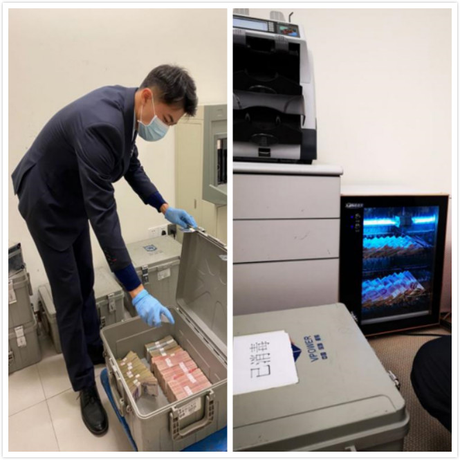 該行加強特殊時期現(xiàn)金管理,為轄內(nèi)所有現(xiàn)金網(wǎng)點配備專用現(xiàn)金消毒柜,要求回籠現(xiàn)金必須消毒處理,經(jīng)過14天的“隔離”方可對外支付,目前投放的錢盡量以原封新券為主。同時指派專人監(jiān)測自助設(shè)備運行情況,做好外包服務(wù)疫情防控的指導(dǎo)和協(xié)調(diào)。
