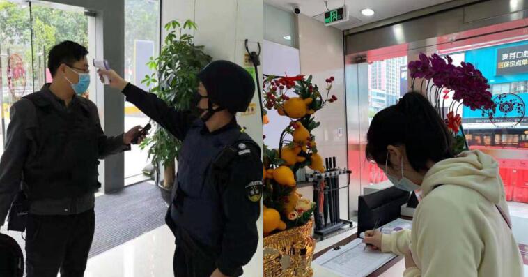 疫情發(fā)生后,寧波銀行深圳分行第一時(shí)間為網(wǎng)點(diǎn)員工準(zhǔn)備了體溫計(jì)、洗手液、酒精、手套、口罩和護(hù)目鏡等防疫物資,督促員工測(cè)體溫、勤洗手、戴口罩,做好安全防護(hù)工作。網(wǎng)點(diǎn)做好到行客戶體溫檢測(cè)和基本情況登記工作,引導(dǎo)客戶減少聚集,快速辦理業(yè)務(wù)。