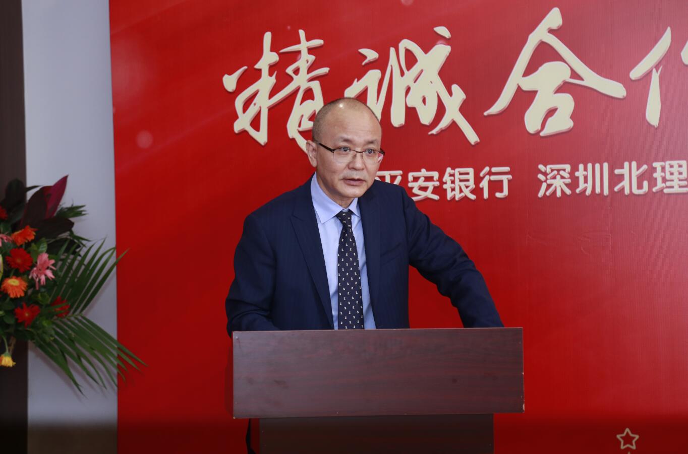 平安銀行行長(zhǎng)胡躍飛在捐贈(zèng)簽約儀式上致辭