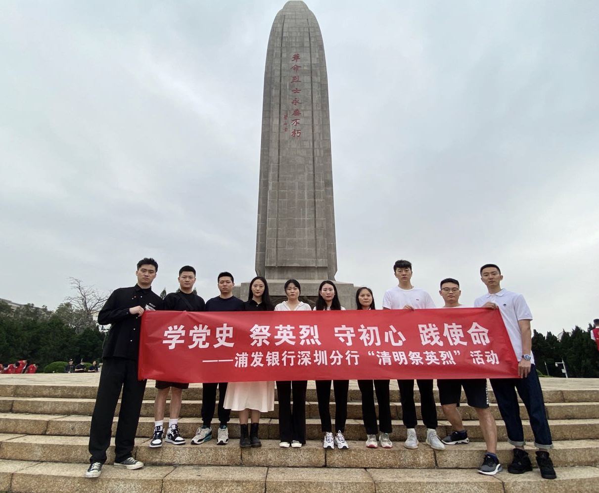 烈士陵園莊嚴肅穆,紀念碑巍然挺立。是日,社會各界人士紛紛來此敬獻花圈,鞠躬默哀。在門口寫下留言向英烈致敬之后,來自浦發(fā)銀行深圳分行的黨員代表們和青年員工們來到紀念館,聆聽紅色革命故事,接受了一場深刻的黨史學(xué)習(xí)教育。