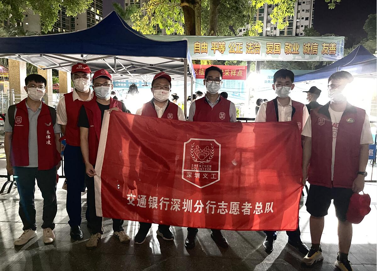 近期,深圳疫情防控警報(bào)再次拉響,交通銀行深圳分行團(tuán)委積極響應(yīng)深圳團(tuán)市委、深圳市義工聯(lián)合會(huì)號(hào)召,向青年員工發(fā)出志愿服務(wù)倡議,廣大青年團(tuán)員聞令而動(dòng)、起而行之,筑牢疫情防控青春戰(zhàn)線。交通銀行深圳分行團(tuán)委、福田團(tuán)支部、光明團(tuán)支部和羅湖團(tuán)支部等單位的志愿者深入社區(qū),在烈日炎炎下,或披星戴月中,積極開(kāi)展疫情防控志愿服務(wù)。