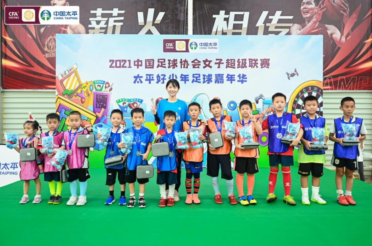 活動(dòng)現(xiàn)場(chǎng),5-10歲的兒童分組進(jìn)行1V1趣味氣墊足球賽,經(jīng)過(guò)4輪激烈角逐,從參賽選手競(jìng)選出12名選手被評(píng)為“太平好少年”稱號(hào),由熊熙女士親自頒獎(jiǎng),并從優(yōu)勝者中抽取幸運(yùn)球童獲得女足大禮包。除了氣墊足球賽之外,現(xiàn)場(chǎng)的小選手們還體驗(yàn)了多項(xiàng)趣味互動(dòng)游戲,也收獲了精美的參與禮品。