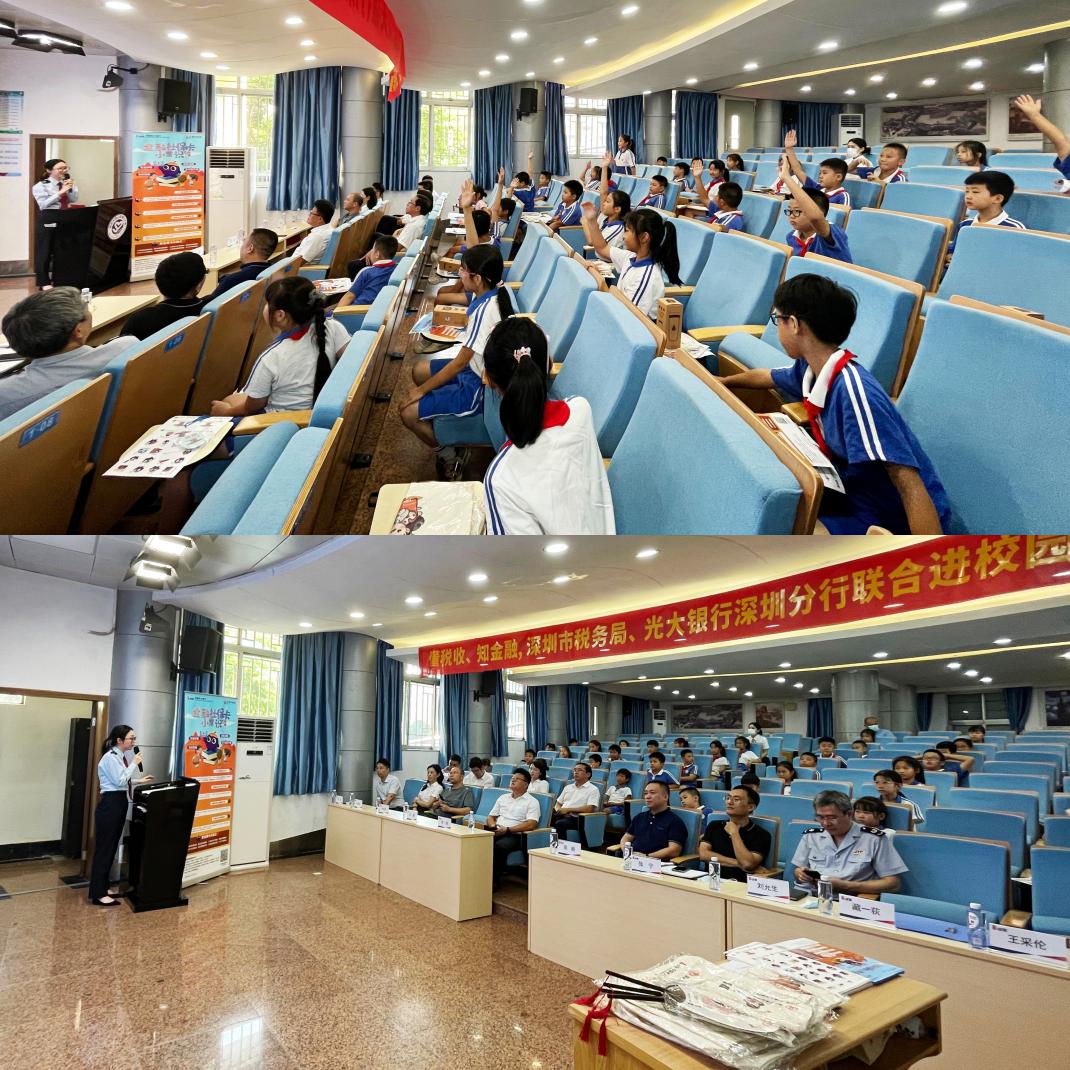 此次活動深圳市稅務局黨委與光大銀行深圳分行黨委高度重視,光大銀行深圳分行副行長、黨委委員宋綱、深圳市稅務局社會保險費處處長高鵬出席活動,旨在以2021-2022年度少兒醫(yī)保征收為契機,讓孩子們從小培養(yǎng)依法納稅、自覺參保意識,同時普及金融知識,關注青少年思想道德教育,提升金融安全防范意識,履行社會責任。活動前,光大銀行深圳分行副行長宋綱、深圳市稅務局社會保險費處處長高鵬分別對青少年送出了寄語,希望通過銀、稅、校合作,建立社保、金融知識傳輸通道,讓孩子們將稅務、社保、金融知識帶回家。