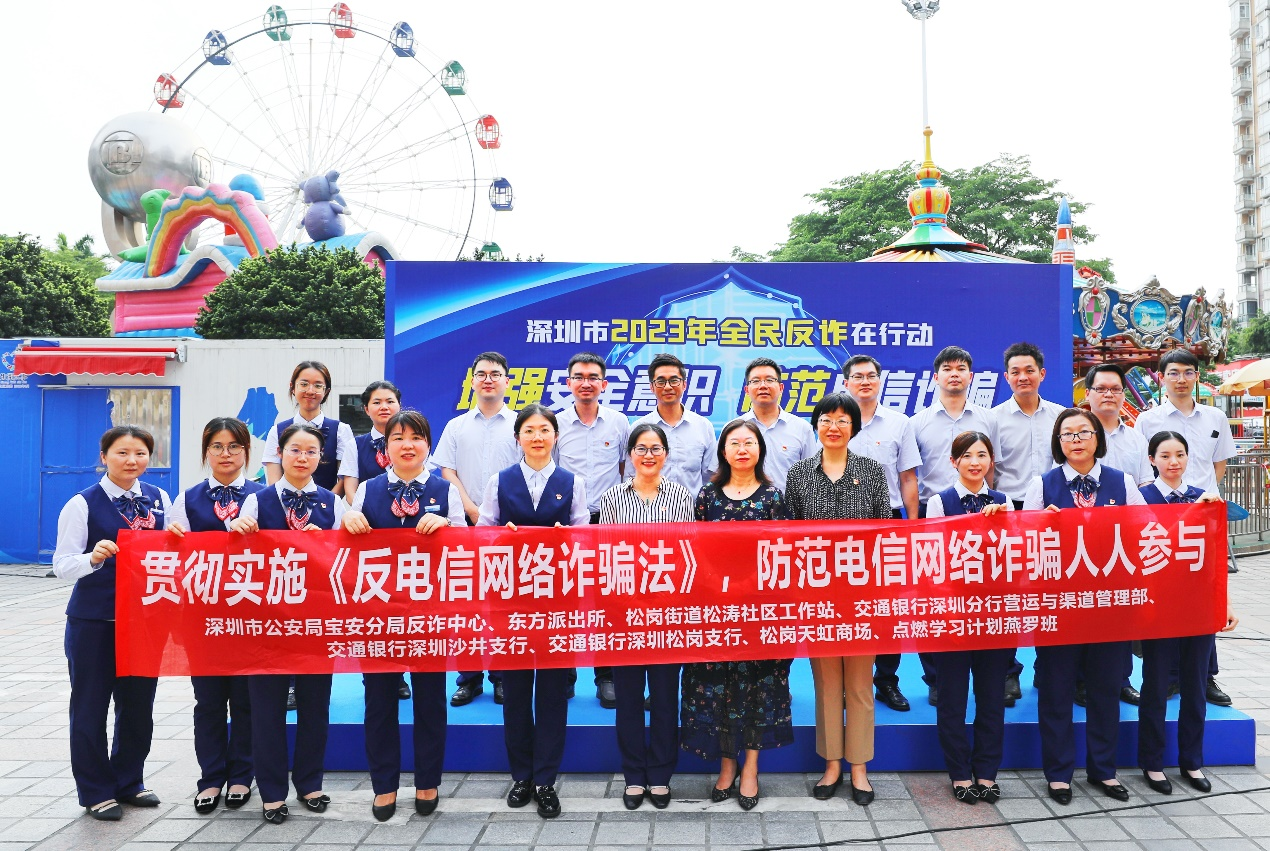讀特客戶端·深圳新聞網2023年6月1日訊(記者 朱琳 通訊員 張?zhí)駥帲檫M一步提高群眾防范各類電信詐騙安全意識,有效打擊詐騙犯罪,預防和減少電信詐騙案件的發(fā)生,廣泛宣傳落實《反電信網絡詐騙法》,6月1日,交通銀行深圳分行聯合深圳市公安局寶安分局反詐中心、松崗街道辦、東方派出所、松濤社區(qū)工作站、松崗天虹商場開展了主題為“2023年全民反詐在行動——增強安全意識,防范電信詐騙”的戶外片區(qū)反詐宣傳活動。