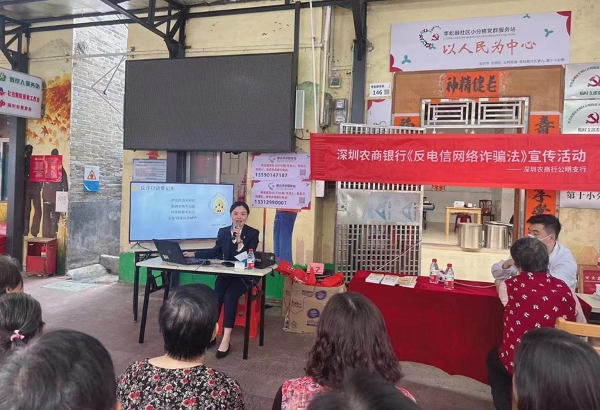 深圳農(nóng)商銀行公明支行筑牢老年金融安全防線。為增強(qiáng)老年群體風(fēng)險(xiǎn)防范意識,幫助廣大老年人守好“錢袋子”。2024年3月,公明支行在李松蓢?yán)先嘶顒又行呐e辦主題為“警惕養(yǎng)老騙局,守護(hù)錢袋子”的反詐宣傳活動。工作人員通過PPT演示、案例演練、發(fā)放宣傳折頁、游戲互動等方式,揭示非法集資與電信詐騙的種種伎倆,讓阿公阿婆認(rèn)清騙局真相,在輕松愉快的氛圍中掌握防詐知識。