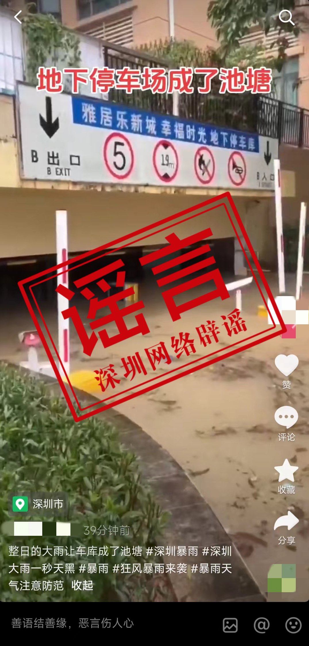 深圳新聞網(wǎng)2024年5月4日訊(記者 李紫晴)5月4日,抖音有網(wǎng)民發(fā)帖稱深圳整日大雨讓車庫成了池塘。視頻顯示為雅居樂新城幸福時光地下停車庫。