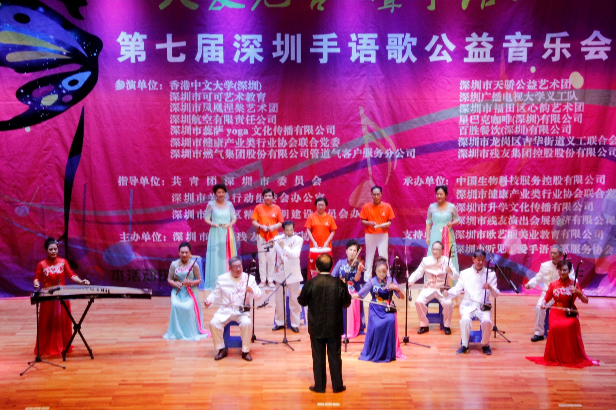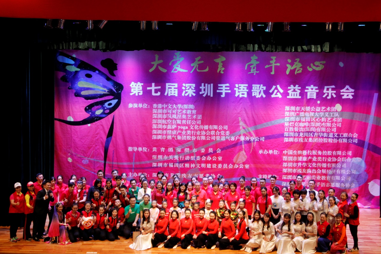 據(jù)悉,本屆手語(yǔ)歌公益音樂會(huì)由深圳市福田區(qū)宣傳文化體育事業(yè)發(fā)展專項(xiàng)資金資助,同時(shí)獲得市委宣傳部、市共青團(tuán)、市關(guān)愛辦、區(qū)精神文明辦的大力支持,由深圳市關(guān)愛殘友志愿者協(xié)會(huì)主辦,中國(guó)生物科技服務(wù)控股有限公司、深圳市健康產(chǎn)業(yè)類行業(yè)協(xié)會(huì)聯(lián)合黨委、深圳市升學(xué)文化傳播有限公司和深圳市殘友演出會(huì)展經(jīng)濟(jì)有限公司等單位聯(lián)合協(xié)辦。自2008年首屆手語(yǔ)歌公益音樂會(huì)舉辦以來(lái),歷屆“深圳手語(yǔ)歌公益音樂會(huì)”都會(huì)邀請(qǐng)政府、企事業(yè)單位、社會(huì)團(tuán)體等學(xué)習(xí)手語(yǔ)歌舞、舉行大型公益匯演。(張俊達(dá))