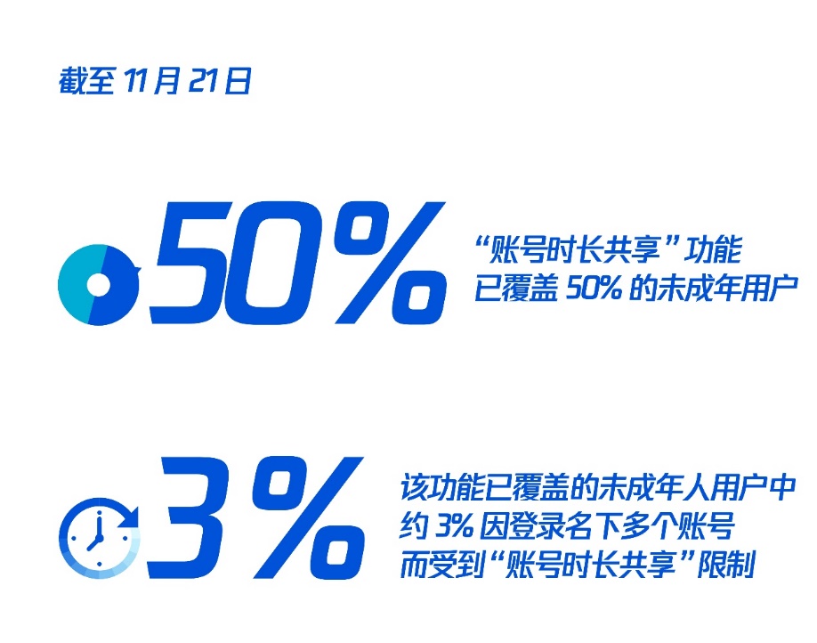 11月15日在《王者榮耀》啟用的“賬號(hào)時(shí)長(zhǎng)共享”功能,基于自然人身份對(duì)未成年用戶名下賬號(hào)的總游戲時(shí)長(zhǎng)進(jìn)行合并計(jì)算,目前正在逐步發(fā)揮效力。