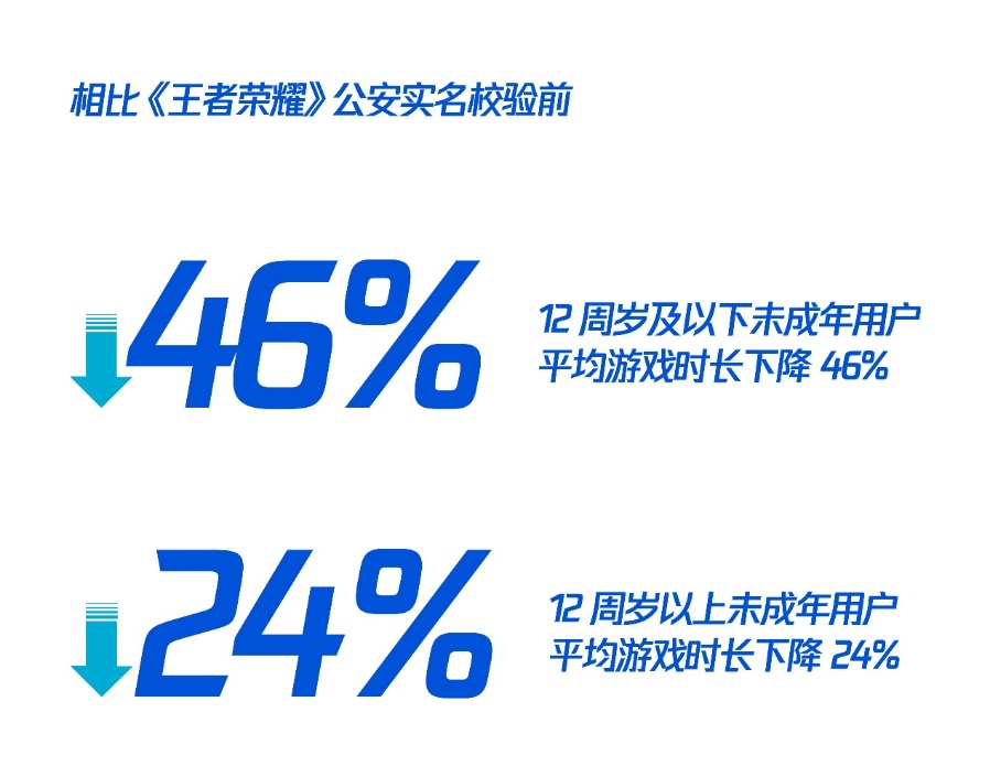 通過(guò)公安實(shí)名校驗(yàn)的工作,未成年用戶的身份得到更精準(zhǔn)的判斷,平均游戲時(shí)長(zhǎng)也呈現(xiàn)可見(jiàn)、顯著的下降。