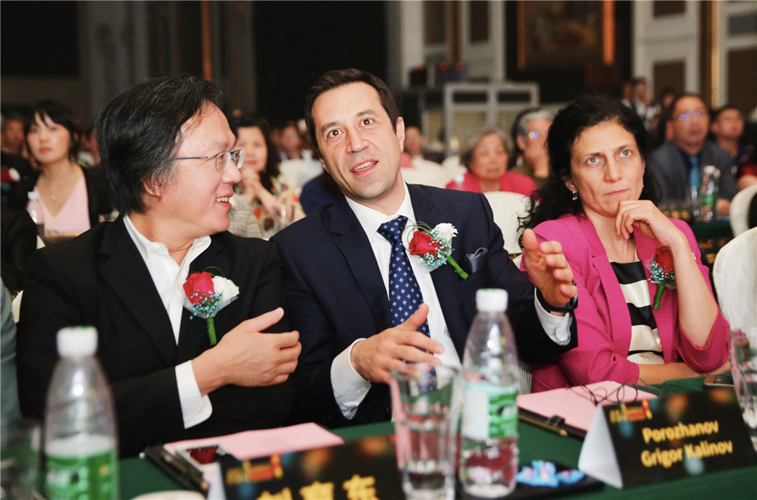 △保加利亞駐中國大使Porozhanov Grigor Kalinov與中俄友好大使、俄羅斯著名影星喜蓮娜為保加利亞DA Architects公司設(shè)計師頒發(fā)“最佳商業(yè)空間設(shè)計獎”