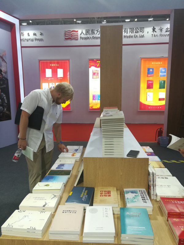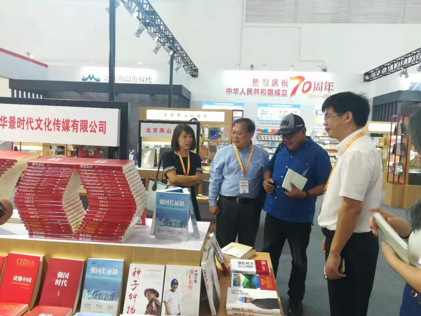 中國北京出版創(chuàng)意產(chǎn)業(yè)園區(qū)企業(yè)北京華景時代文化傳媒有限公司、禹田翰風(fēng)圖書有限公司、后浪等單位參展,本次展出的亮點圖書包括慶祝新中國成立70周年系列如《跨越(1949-2019)》《中國天眼:南仁東傳》《種子鐘揚》《初心最美》等;展現(xiàn)北京城的歷史文化沿革、經(jīng)濟發(fā)展概貌的《北京秘密:你所不知道的全域文化之城》《北京城》等書;總結(jié)中國模式、中國道路,提供全球治理的中國方案的《40年改變中國》《中國道路的成功密碼》《強國長征路》等圖書。