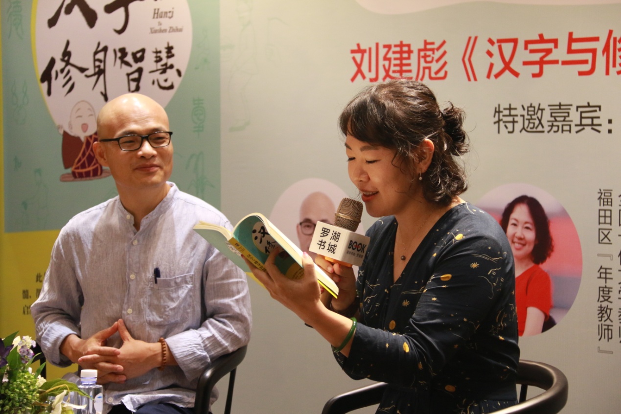 活動由深圳書城羅湖城張華女士主持,邀請到壹讀書會創(chuàng)始人、知名閱讀推廣人、 《漢字與修身智慧》作者劉建彪先生和全國十佳文學教師、廣東省閱讀推廣“點燈人”譚妙蓉女士擔任對話嘉賓,為聽眾講述漢字的起源以及他們根據(jù)切身體會對漢字的解讀。