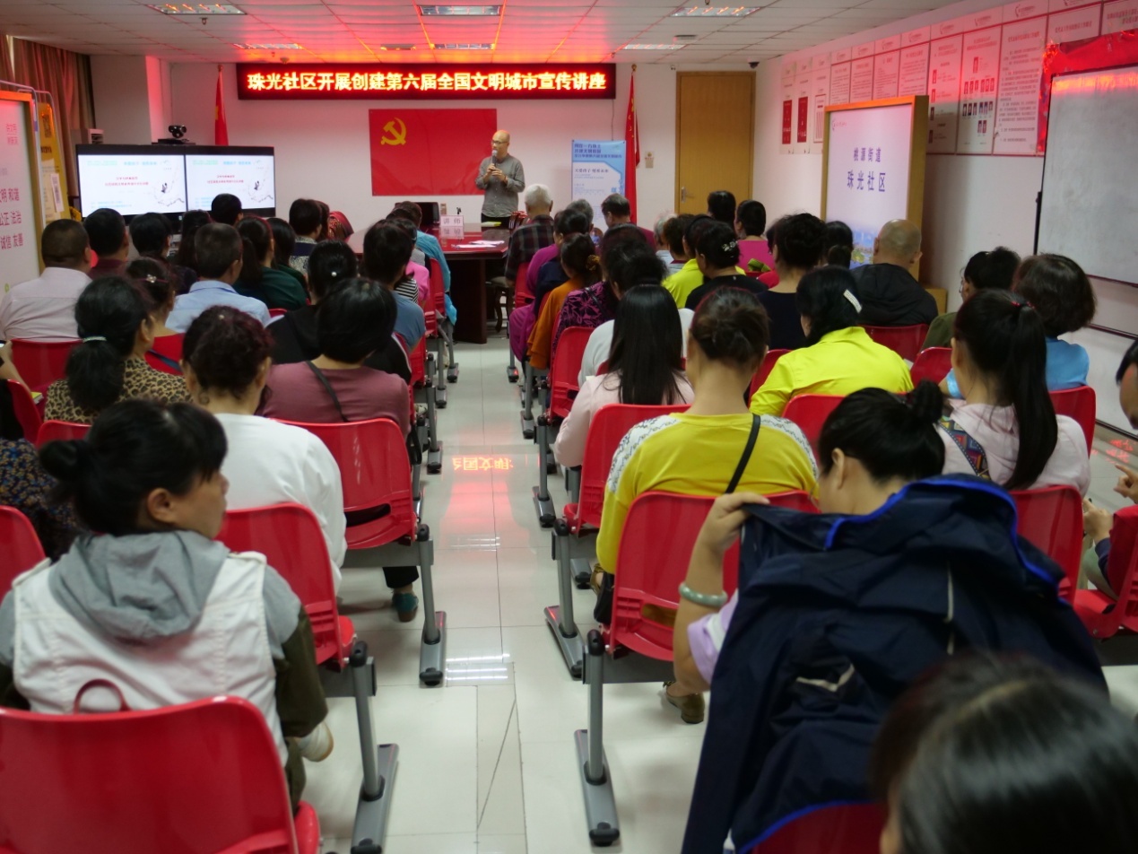 最后,劉建彪老師高度表?yè)P(yáng)了珠光社區(qū)居民認(rèn)真專注的聽(tīng)講態(tài)度,他指出,尊師好學(xué)也是“文明”的體現(xiàn),并由衷感謝珠光社區(qū)黨委對(duì)本次活動(dòng)的有序組織與安排,贊揚(yáng)他們對(duì)城市文明創(chuàng)建工作的重視與支持。