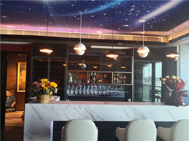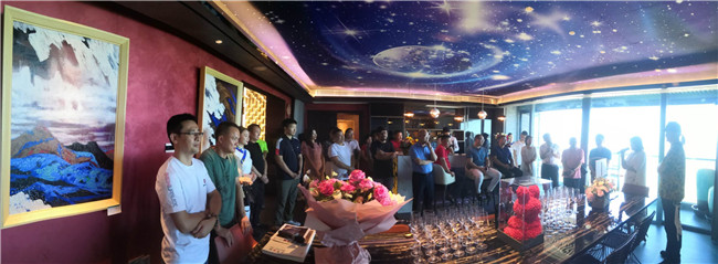 樊鴻賓美術(shù)館座落在珠海市香洲區(qū)內(nèi),旁接情侶路,目眺鳳凰灣,一派浪漫情調(diào),真是一塊滋養(yǎng)藝術(shù)的風(fēng)水寶地。展館所在的天宸大廈十六樓。面朝大海,視野開闊,藍(lán)天白云,碧海揚(yáng)帆,讓人心曠神怡。與此同時,室內(nèi)樂聲輕伴、紅酒飄香,此景、此情映襯之下,緩步巡看展品,或細(xì)細(xì)靜賞佳作,自然而然有一份莫名舒適的藝術(shù)享受。
