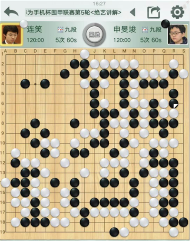 第四臺,申旻俊執(zhí)黑對陣連笑,白棋必勝局面172殺黑死活看錯,白虧十幾目棋,瞬間落敗。