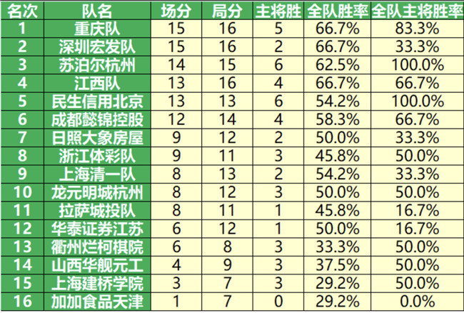 《2020年華為手機(jī)杯中國(guó)圍甲聯(lián)賽第六輪積分榜》