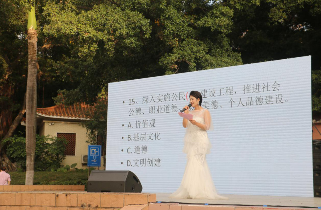 演出在歡快的《永唱中國夢》歌舞中拉開了帷幕;懷舊老歌《紅歌聯(lián)唱》經(jīng)典又回味,越聽越喜歡;特色節(jié)目《李玉剛模仿秀》反串女聲,一開口驚艷全場……整場演出高潮迭起,精彩不斷,觀眾們無不拍手鼓掌,歡呼叫好。節(jié)目主持人在每個(gè)節(jié)目之間還以有獎問答的形式,宣傳黨的十九屆五中全會的內(nèi)容,觀眾們踴躍參與,大家都說,這樣喜聞樂見的活動親切,接地氣,不妨多來幾場。目前,西鄉(xiāng)街道黨工委正在打造“學(xué)習(xí)強(qiáng)國”示范街區(qū),“今天,你學(xué)習(xí)了嗎”已成為時(shí)尚的見面問候語。(孫善文)