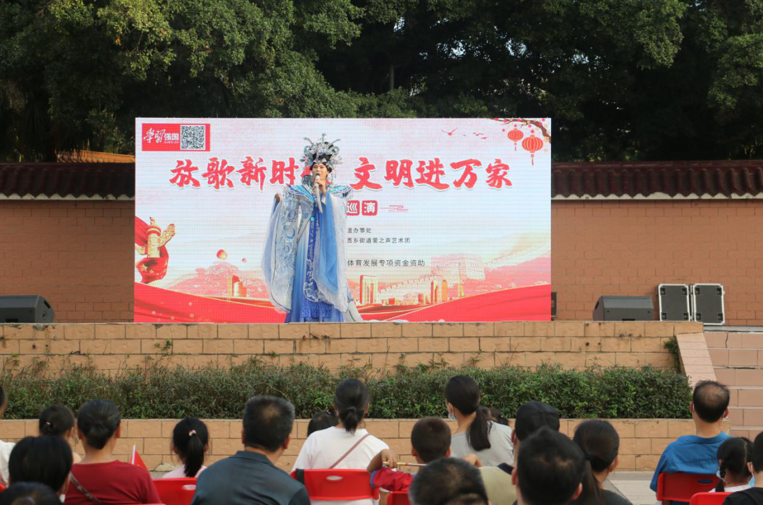 “放歌新時(shí)代 文明進(jìn)萬家”文藝巡演由深圳市寶安區(qū)西鄉(xiāng)街道辦主辦,深圳市寶安區(qū)西鄉(xiāng)街道愛之聲藝術(shù)團(tuán)承辦,寶安區(qū)宣傳文化體育發(fā)展專項(xiàng)資金資助。來自愛之聲藝術(shù)團(tuán)的深圳一線文藝工作者們通過文藝表演的形式為廣大居民奉獻(xiàn)精彩的文藝大餐,用群眾喜聞樂見的形式展示西鄉(xiāng)發(fā)展變化,再現(xiàn)有志之士在西鄉(xiāng)干事創(chuàng)業(yè)、成就夢想的情景,并宣傳了黨的十九屆五中全會精神,深受群眾歡迎。