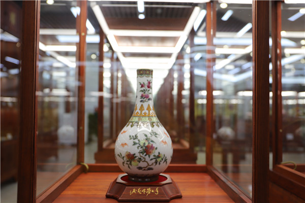 仿制清宮琺瑯彩瓷陳列品。
