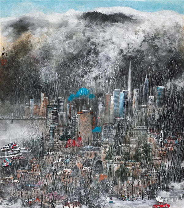 城市山水畫是新時期以來伴隨著中國城市化浪潮而在美術(shù)界提出的一個新概念,旨在用中國畫或水墨畫來反映現(xiàn)代人賴以生存的城市及城市生活,以此探索中國畫另一種方式的現(xiàn)代性轉(zhuǎn)型。城市山水畫并不是城市加山水這樣簡單。從藝術(shù)語言來說,山水筆墨的縱情寫意是完全排斥鋼筋水泥筑成的各種擠壓在一起的城市建筑的,中國畫的寫意筆線擅長勾廓,而拙于造型體量的塑造。因而,僅就中國畫表現(xiàn)現(xiàn)代城市建筑這一能力而言,傳統(tǒng)筆墨必須加以改良或新造才能適應(yīng)現(xiàn)代城市建筑及都市景觀的表現(xiàn)需求。從藝術(shù)境界來說,城市山水畫展現(xiàn)的應(yīng)當是現(xiàn)代人的生活方式,表達的意蘊也應(yīng)當是自然與人的和諧精神;但城市樓宇林立,玻璃和鋼的大廈越建越高,高科技的交通與通信工具迫使城市的個人空間越來越小,而城市生活節(jié)奏則越來越快,這意味著城市生存與城市生活方式對于人與自然和諧關(guān)系的背離。因而,城市山水畫無論是表現(xiàn)現(xiàn)代化城市生活與自然的諧調(diào)關(guān)系,還是僅僅用筆墨或彩墨表達現(xiàn)代化城市人文景觀,都是值得中國畫學(xué)探討的一個重要學(xué)術(shù)課題。