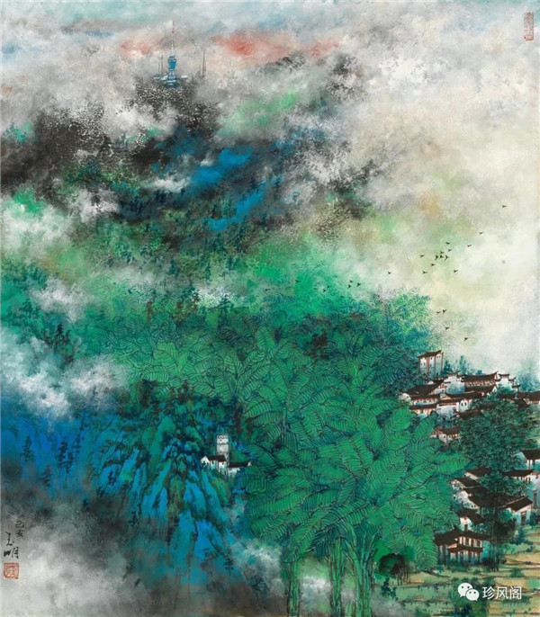 宋玉明從金陵畫派的新傳統(tǒng)跨越到城市表現(xiàn)的積彩拓墨畫法,既體現(xiàn)了現(xiàn)代化城市對于變革傳統(tǒng)的時代訴求,也體現(xiàn)了他移居深圳后這座新興城市文化對于他的深刻影響。畢竟,連續(xù)數(shù)屆的深圳水墨雙年展對于水墨在跨文化中重要作用與表現(xiàn)方法的突破,都給予他至深的思想開拓。這表明,城市山水畫已不單純是用中國畫表現(xiàn)城市的命題,而是其中能夠蘊含多少城市文化觀念與城市審美的方法,宋玉明對于城市山水畫的探索,體現(xiàn)的正是這樣一種對城市現(xiàn)代文化的思想融合性。而不拘謹于城市一磚一石、一街一道、一房一樓的描繪,著眼于發(fā)揮水墨與彩墨表現(xiàn)的自由性,抑或體現(xiàn)了人性、自然與現(xiàn)代城市共同作用的現(xiàn)代生活方式與人文理想。的確,純粹用中國畫或水墨畫來探索城市的現(xiàn)代化景觀表現(xiàn),也許只是淺層次的審美需求;而只有當把山水畫作為人與自然和諧統(tǒng)一的觀念表達植入城市現(xiàn)代化的審美訴求時,城市山水畫才能真正凸顯出其深刻的美學(xué)價值。這正是我們從宋玉明的作品里能夠讀解到的他對于城市山水畫審美理想的一種勾畫。